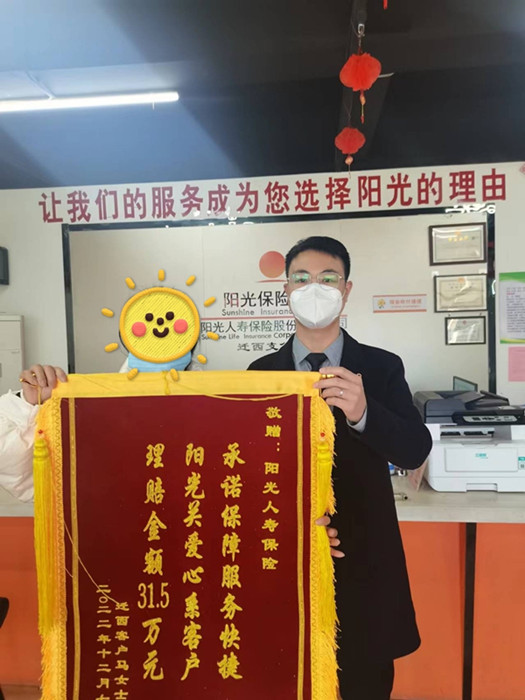 为避免马女士来回奔波,理赔人员第一时间走访并核实出险经过,仅用了两天时间就完成了31.5万元的理赔给付。马女士赠送锦旗后动情地表示:“这段时间心乱如麻,家里又第一次遇见保险理赔这件事,一时不知如何处理。到阳光人寿申请理赔时,负责接待的人员十分耐心周到,给了我很多帮助,真的感谢阳光人寿、感谢所有的工作人员。”