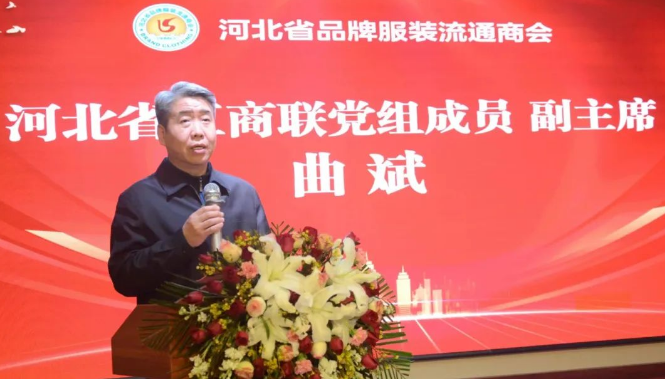 河北省工商联党组成员、副主席曲斌出席会议、河北省商务厅副厅长裴世馨、河北省工信厅消费处处长薛天顺,石家庄市人大常委会原秘书长、河北省浙江企业联合会秘书长戴留金,河北省市场监督管理局原消费者权益保护中心主任兼河北省消费者权益保护委员会秘书长张福齐、邢台市市场监督管理局原党委书记兼局长、现河北省市场监督管理局二级巡视员张群,新华区民族路步行街管理委员会党委书记兼主任王磊,河北省冀中商会会长高艳虎,新华区市场监督管理局局长赵历,上海服装协会会长樊德贵,高阳纺织商贸城服务中心负责人王枫,金指数品牌服装广场董事长王申钱、财务总监赵典柳出席了出席了会议,河北省品牌服装流通商会、河北省裤业协会全体会员参加了会议。