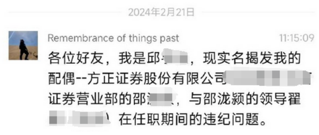 河北理财网综合(丹青)金融圈从不缺桃色新闻。2024年2月21日,方正证券员工家属邱某发帖举报其妻子邵某某长期与男领导通奸、夸大投资回报等违规行为。