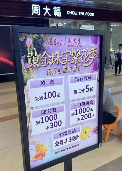 老凤祥门店销售人员也表示:“目前,除了黄金是每克减50元优惠外,其他品类的产品基本为5折优惠。‘五一’假期叠加母亲节即将来临,除黄金外的其他品类产品优惠力度都比较大。”