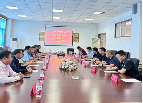 京津冀在线网综合(丹青)2024 年 7 月 2 日下午,一场意义非凡的河北科技大学田径队运动服装捐赠活动在河北科技大学体育工作部隆重举行。参加此次活动有河北科技大学体育部领导、河北省民营企业合作发展促进会的代表、鑫达建工集团有限公司的代表、大学生田径运动员以及多家媒体。