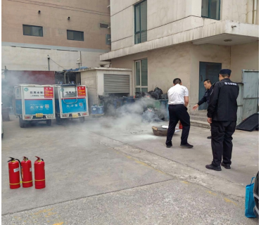 随后,安全员组织全体员工在开阔区域展示了灭火器的正确使用方法和人员疏散标准流程,并就如何正确拨打报警电话做了详细介绍。
