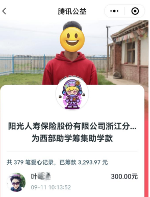 今年9月,阳光人寿浙江分公司响应2025年“金融教育宣传周”的号召,倾心一线办实事,扎根基层惠民生。公司通过腾讯公益平台发起“春华秋实西部助学·一起捐”公益活动,定向为云南广南县的困难学子筹集助学金。分公司的内外勤员工陆续献出爱心,很多伙伴不仅自己捐,还带动家人朋友一起加入,在源源不断的爱心汇聚中,一笔笔善款从四面八方筹集,点滴心意汇成江河,托起更多孩子的读书梦。
