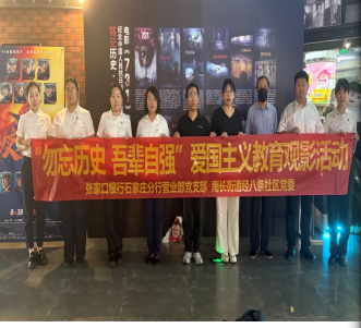 河北理财网综合(通讯员 田洪月)9月18日,张家口银行石家庄分行营业部党支部联合南长街经八条社区党委,组织支部全体党员、积极分子及社区党员代表在电影院集中观看爱国主义题材电影《731》,进一步深化全民国防教育,增强员工国防观念。