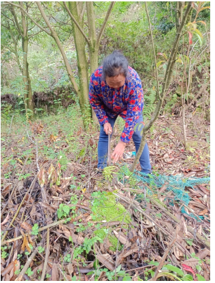 图:彭水县联合乡镇护林人员李芬(化名)正在清理枯枝