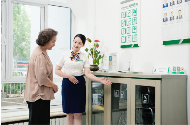 图:柜面服务人员为老年客户介绍适老化服务设施