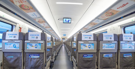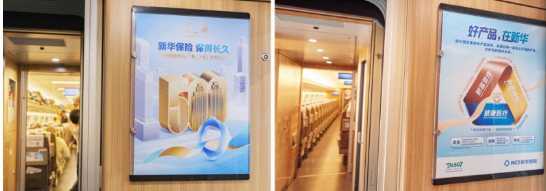 依托高铁的强大客流和独特场景优势,新华保险创新打造“沉浸式媒体展示+首发仪式+车上互动”立体化传播新范式。在高铁这一沉浸式“品牌移动展厅”中,车身彩贴、头片、桌贴、品牌天幕、海报等全媒体载体,全方位、多维度展示了新华保险的品牌实力与产品服务优势。公司还联动哈尔滨、西安、杭州、石家庄、深圳、上海、郑州、北京等核心城市,开展车站首发仪式和车上打卡互动体验活动。