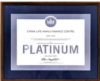 图:中国人寿安徽金融中心获得LEED铂金级认证