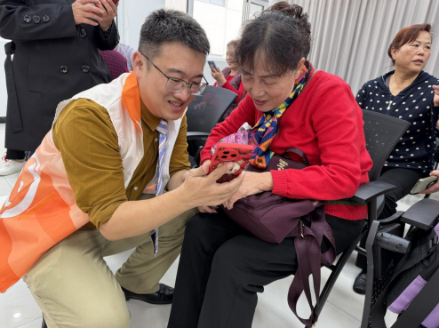 健康关怀与物资慰问同步推进,让温暖直达老年群体心坎。阳光人寿广西分公司在南宁市老年人活动中心开设“银龄智慧课堂”,同时提供血压测量、健康咨询服务;荆州中支携手社区与中医院,为老人免费测血压、剪发,还组织包饺子活动,在欢声笑语中传递团圆温情;锡盟中支连续8年开展敬老活动,此次向颐和苑国际养老中心捐赠保健食品与适老化物资,通过趣味问答传授资金安全技巧;河北分公司在重阳节当天赴元氏县毛遗村,为困难老人送去米面油,在村委陪同下逐户走访,倾听生活需求;吉林分公司在智慧助老之余设立了“阳光理发角”,为老人提供爱心剪发服务;宁夏分公司前往社区内的空巢、失独及困难老人家庭,为老人们送去了毛毯、食用油、纸巾等实用生活物资;伊犁中支在柜面组织免费测压活动,工作人员记录数据并提供个性化健康建议,提醒老人注意季节保暖。