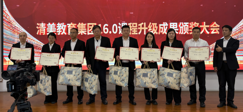 在隆重的颁奖环节,集团对在V16.0课程研发中表现突出的团队与个人进行了表彰,颁发了“清美教育集团V16.0课程研发贡献奖”。这一环节不仅是对过往辛勤付出与卓越成果的肯定,更是对全体研发人员投入V17.0新篇章的激励与鼓舞,现场掌声不断,气氛热烈。