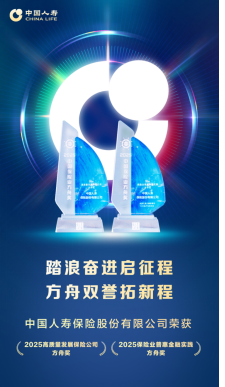 寿险行业头雁——中国人寿保险股份有限公司(以下简称“中国人寿”,股票代码:601628.SH,2628.HK)凭借在高质量发展领域的卓越表现与普惠金融的特色实践,一举斩获“2025高质量发展保险公司方舟奖”和“2025保险业普惠金融实践方舟奖”两项重磅荣誉。