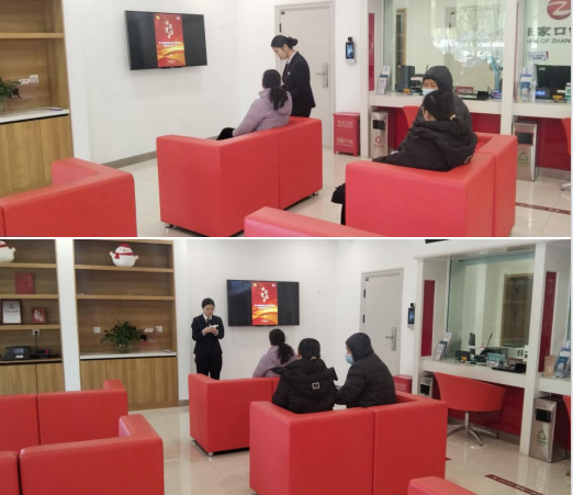 支行在大堂电视上将宪法宣传周主题海报与解读短片循环播放,从宪法基本原则到公民基本权利,从法治精神内涵到金融法治常识,吸引了不少客户驻足观看。同时,在客户等候区,精心设立的宪法宣传专区整齐摆放着各类宣传手册,涵盖宪法核心要点、金融消费者权益保护、反洗钱、防范电信网络诈骗等重点内容,方便客户随时取阅学习,让等候时间变身“普法课堂”。