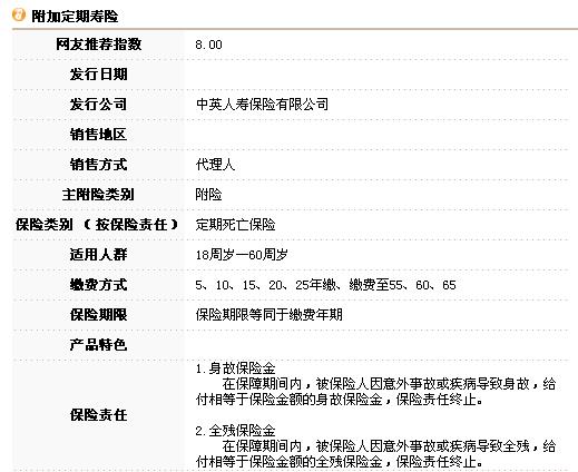 附加定期寿险-中英人寿-产品超市-保险-河北理财网—河北权威财经门户