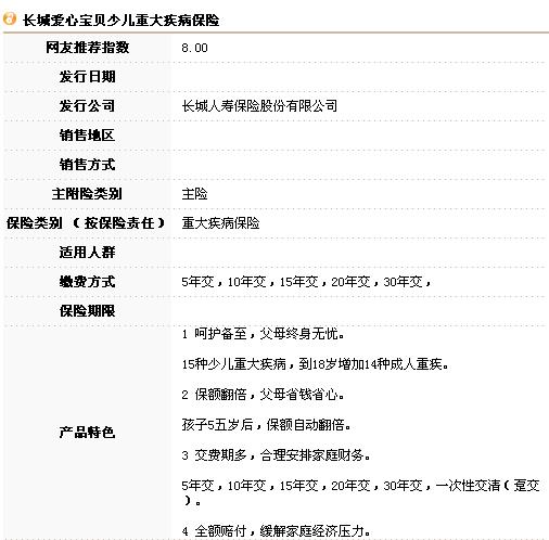 长城爱心宝贝少儿重大疾病保险-长城人寿-产品超市-保险-河北理财网—河北权威财经门户